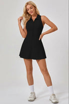 Turn heads with the Zesty Zipper Dress, featuring a sporty zip-up front, chic collar design, built-in bra and a flared skirt with built-in shorts and pockets. Perfect for playing padel, active days, or casual outings.