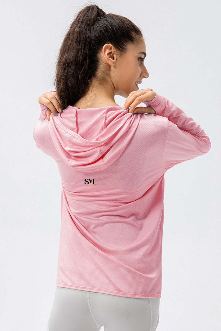 With full-length sleeves, a sleek zip-front closure and an adjustable hood, this women’s lightweight jacket transitions seamlessly from active sessions to everyday layering.