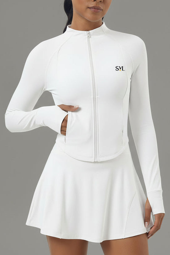 Glide through every warm-up, cool-down or casual outing in the Swan Sway Jacket — a second-skin performance layer designed with graceful structure and modern sophistication. Crafted to move with you, this women’s performance jacket contours your silhouette while offering coverage and confidence on and off the court.