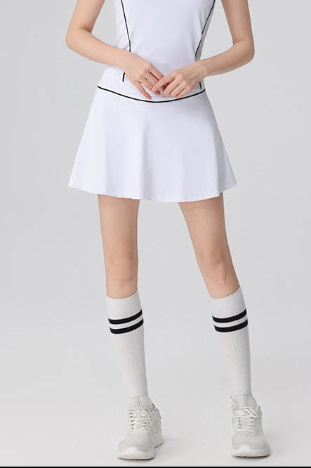 Step onto the court in striking style with the Kate Skirt — a dynamic blend of sleek tailoring and athletic flair. Designed for padel, tennis, and active days in the sun, this skirt features a clean A-line silhouette with subtle volume that moves with you beautifully on every swing, serve, and sprint.